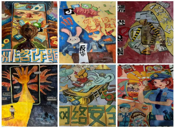 随后,各班同学分组设计的反诈海报。海报作品中运用醒目标语、漫画案例等形式,将金融安全知识形象化、具体化,充分展现了学子们的反诈热情与创意。展现出同学们在未来的学习生活中,将持续践行注重金融安全,增强反诈意识的理念,以及自觉抵制不良金融诱惑,宣传反诈知识,为构建安全、健康的校园金融环境贡献青春力量的思想。