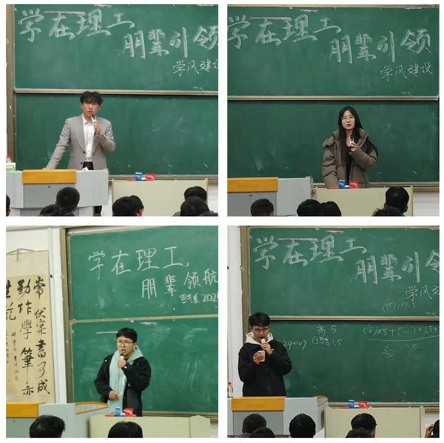 为帮助2025级新生尽快适应大学学习生活节奏,明晰学业发展路径,夯实成长根基,营造良好的学风氛围。11月10日,电气工程系在新教D201教室举办“学在理工・朋辈领航”主题学风建设活动。活动邀请系内“学业卓越型”学霸赵海涛、颜菲、刘浩和“成长感悟型”学霸李冠男,以经验分享与互动答疑相结合的形式,为新生们送上了一堂干货满满的“成长必修课”。