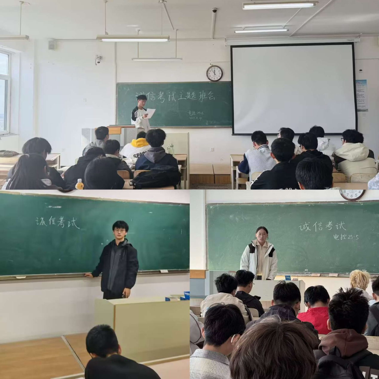 此次主题班会的召开,进一步筑牢了学生诚信考试的思想防线,增强了纪律观念和责任意识。同学们纷纷表示,将严格遵守考试纪律,自觉抵制作弊行为,以诚信态度对待每一场考试,用实际行动维护良好的学风考纪。电气工程系也将持续加强考风考纪建设,多措并举营造诚信育人氛围,助力学生成长成才。(摄影:王宇涵、杨旭东)