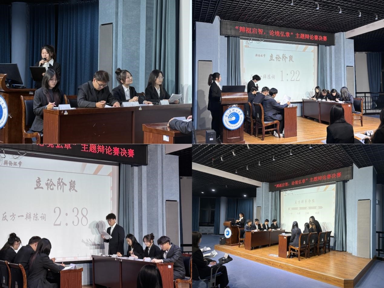 本次辩论赛涵盖初赛与决赛两个阶段。活动启动后,全院学生踊跃报名并积极参与,通过查阅资料、咨询专业人士等途径了解辩论赛规则。初赛于11月9日在四教D201教室举行。12支参赛队伍围绕"大学生消费倾向于为体验/实用买单""传统文化现代表达更应该注重形式创新/内容坚守"等6个热点话题展开激烈讨论。比赛过程中,辩手们反应敏捷,展现了团队协作与个人思辨能力,赢得现场观众掌声不断。其中6支队伍在初赛过程中表现优异,入围决赛。辩论赛决赛于11月14日晚六点在启航中心四楼会议厅举行,围绕"我更愿意当一个合群/不合群的大人""懂得对世界赋/祛魅的人更容易活得幸福"等3个辩题进行辩论。比赛过程中,面对犀利质询,正反双方辩手沉着应答,尽显思辨风采。