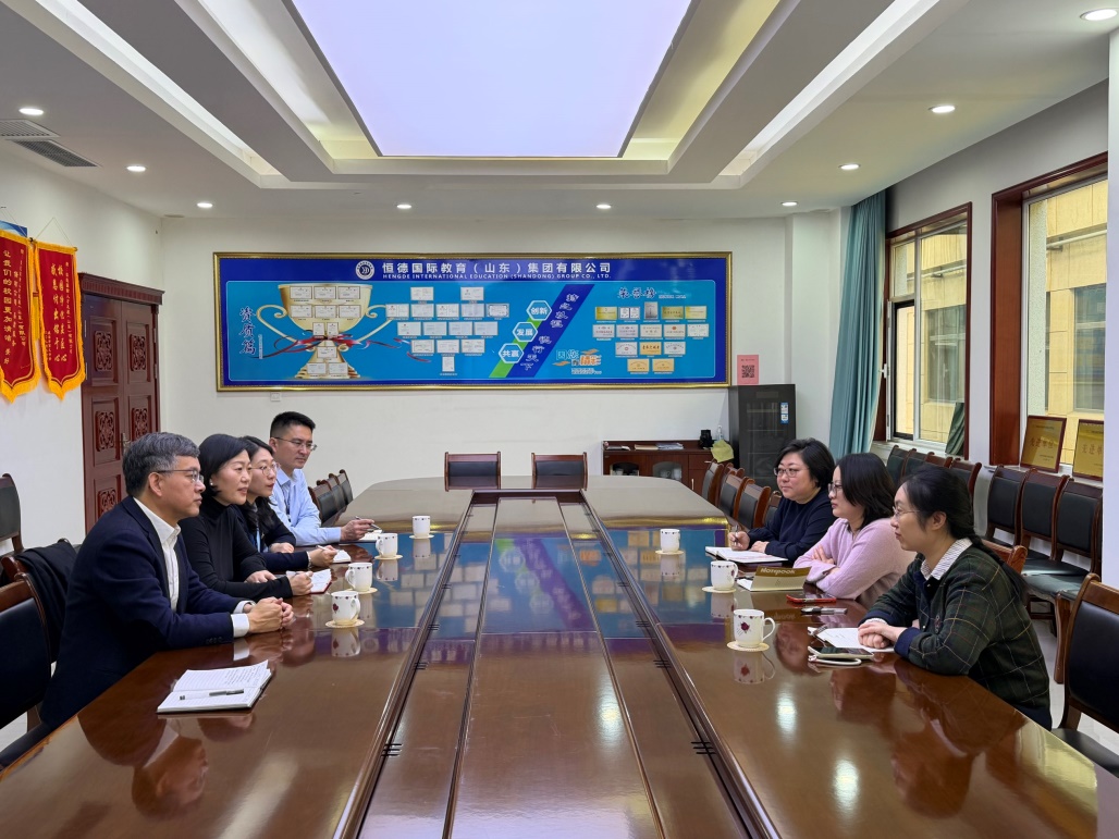 随后,三位教师代表前往山东恒德国际教育集团有限公司进行交流访问。山东恒德国际教育集团有限公司作为外语教育与国际交流领域的重要企业,与哈理工荣成学院外语系同样已建立校外教学实习基地合作关系。企业代表于福杰经理对教师代表团的到访表示热烈欢迎,并详细介绍了公司在国际教育服务、留学项目运营及人才培养方面的整体情况。在交流过程中,校企双方围绕校企实践项目建设、留学合作项目推进以及外语专业人才引进等方面展开深入磋商。双方就学生实习实践、海外升学项目衔接、专业能力与行业需求对接等内容达成多项共识。恒德国际教育集团方面表示,将充分发挥自身平台与资源优势,为外语系学生提供更多优质的实践与发展机会,同时也期待与学院在人才培养和项目合作方面实现更深层次的合作。