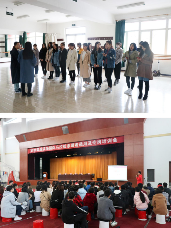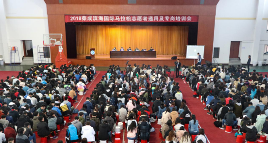 为进一步做好奔跑中国·美丽中国2018荣成滨海国际马拉松志愿服务工作,4月22日,学院团委联合团市委、智美体育在文体中心召开2018荣成滨海国际马拉松志愿者通用及专岗培训会。学院保卫办公室主任彭晓辉、团市委青年志愿者工作负责人李春芬、组委会志愿者部负责人孙铭相、博览会志愿者负责人梁群泰、接待组志愿者负责人周婷出席了培训会,学院团委工作人员、院青年志愿者协会成员、学院全体马拉松志愿者共计800余人参加了会议。会议由学院团委副书记隋明晓主持。