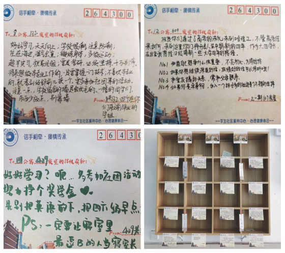 本次活动在学院各寝室楼同时开展,在线上媒体平台和线下宣传的推广下,毕业生以寝室为单位,在明信片上写下对即将入住到这个寝室中2018级新生的期许、祝福和经验分享。明信片归还后,每名毕业生获赠一枚公寓定制书签作为毕业纪念礼物。毕业生们的寄语或是严肃、或是嬉闹,但都难以隐藏字里行间的温情、叮嘱与不舍。2018级新生入学前,各公寓楼长会把明信片逐一张贴到对应的新生寝室中,让这份寄语继续传递。