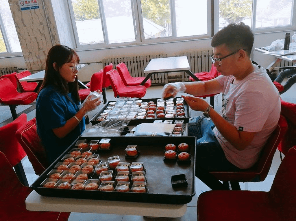 义卖前期,外语系团总支与学校食堂协商本次爱心义卖活动中的相关事宜,随后一起采购制作月饼所需的模具和包装盒等材料。义卖中期,食堂工作人员不畏辛劳,加班加点赶制月饼;学生积极组织义卖,统计订购信息,并将月饼亲手送到各个同学手中。义卖后期,工作人员将义卖所得金额折换为生活必需品,并以哈尔滨理工大学的名义捐赠给寻山街道敬老院,深受工作人员的感谢。