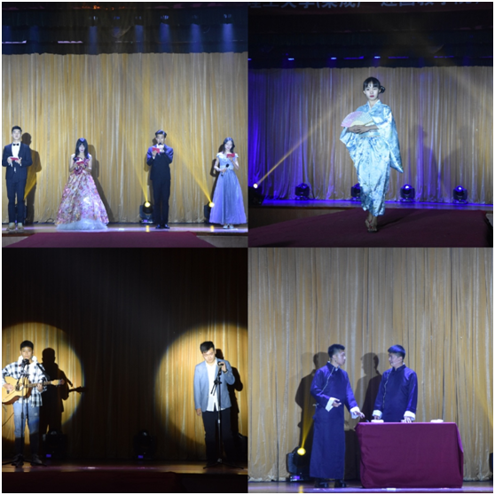 晚会在火热的开场舞中拉开帷幕,镁光灯将整个舞台照得如同梦幻一般。现场观众迅速融入到晚会的欢快气氛中,随之欢呼鼓掌。随后歌曲《你就不要想起我》等节目获得无数掌声;相声《满腹经纶》感染全场,笑声不断。国际教育学院学生会各部部长精心准备的走秀和舞蹈表演,使全场为之沸腾。魔术、双截棍等节目使观众享受了前所未有的视觉盛宴。晚会现场还利用微信公众平台实时互动,贯穿整场晚会,抽奖环节更是将晚会推向高潮。最后伴随一首《光年之外》,本场晚会圆满落下帷幕。整场晚会节目涵盖了歌曲、舞蹈、相声、走秀等方面,充分展现了国际教育学院学子多才多艺、自信昂扬的风采,激起在座同学们的阵阵掌声。