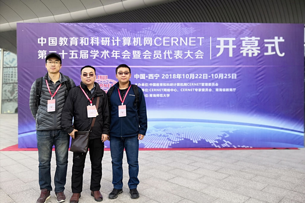 中国教育网(CERNET)第25届年会于2018年10月22日至10月25日在青海省西宁市成功举行。学院派出了现代教育中心主任谢红兵、网络管理员富野、接入认证管理员赵轶三位老师作为代表参加了此届年会。本届年会由中国教育和科研计算机网CERNET管理委员会主办;CERNET网络中心、CERNET专家委员会、青海省教育厅协办;青海师范大学(教育网节点单位)承办。