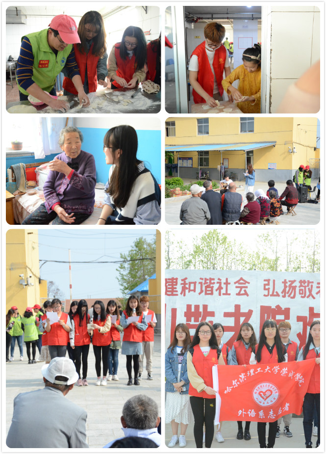 5月13日,国际教育学院在全院中组织并开展了“感恩回报母校、无私奉献爱心”大型义工活动,经过选拔,15名贫困生用饱满向上的心态来到荣成市寻山街道敬老院奉献爱心,为老人们带去了爱与温暖。在此期间,同学们参与了“爱心水饺”的制作过程,为老人们送上一份份热气腾腾的水饺,既温暖了整个房间,也温暖了每个人的心。5月13日亦是母亲节,同学们也为老人们准备了节目,不仅有合唱《好一朵美丽的茉莉花》,也有诗朗诵《啊,母亲》,还有吉他弹唱等精彩节目,用不同的方式为老人们带去了简单而温暖的节日祝福。