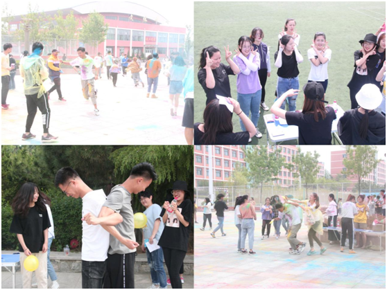 本次活动在校园内设立六个游戏站点及两个补给站,百余名同学进行参赛闯关,感受运动与色彩的激情碰撞。首先,主持人为参赛选手介绍了游戏规则及活动注意事项。在国际教育学院学生会文艺部和东八区社团的精彩表演过后,“彩色酷跑”正式开跑,各个队伍纷纷拿着手中的指示牌出发奔向各关卡。此次活动设立了“背对背夹气球”、“方向口令”、“趣味套圈”、“双人跳绳”“心有灵犀猜成语”“投掷乒乓球”等多项有趣的游戏,参赛队伍需在各站点进行相应的游戏进行挑战并赢取彩粉。每一个比赛项目无不考验着参赛者的动手、反应、集体协作与分工能力。各支队伍精彩角逐,争分夺秒,成为校园里一道道亮丽的风景线。参赛选手经过八个站点完成挑战后,纷纷奔向移动广场进行撒粉保卫战,以庆祝游戏的完成。参赛选手们欢声高呼,互相撒粉,广场上一片斑斓,此次活动在一片欢声笑语中步入尾声。活动结束后,国际教育学院学生会清理活动现场。