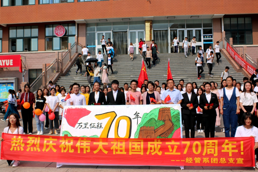 为热烈庆祝祖国70周年华诞,提高新时期大学生爱国教育思想,增强大学生的时代责任感和社会使命感,经管系团总支不断创新教育形式,拓展教育途径,于近期开展了一系列丰富多彩的爱国主义教育活动。