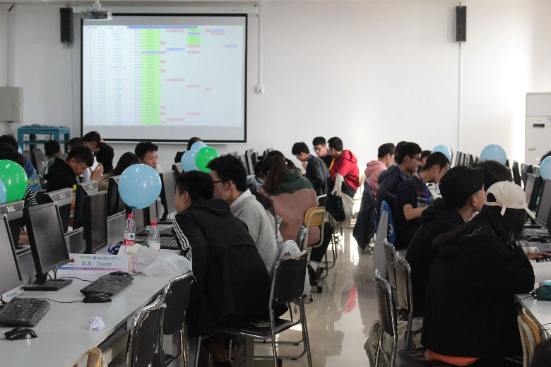 16日中午12:00开始,参赛队员凭借参赛证有序入场,考场内气氛紧张严肃,每个考场配有两个电子设备检测装置,工作人员公正严肃的进行赛场的检录工作。12:30分,在紧张有序的入场后比赛拉开了帷幕。在整个5小时的比赛过程中,每支队伍认真思考,沉着应战,顽强拼搏,充分体现出当代大学生的素质和水平。比赛过程中各位嘉宾、老师亲临赛场,对比赛进行近距离指导,并与同学们一起感受大赛的魅力。