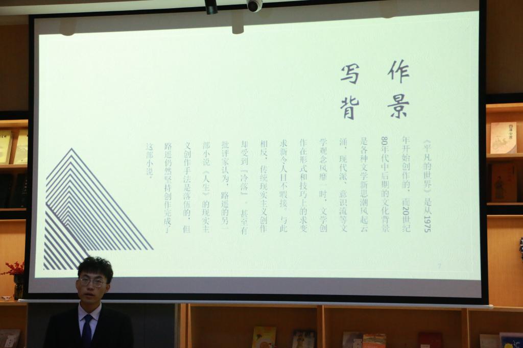 《平凡的世界》这部作品包含着苦难、奋斗、亲情、爱情、友情。参加读书交流会的一些同学们是从高中阶段一次接触并开始阅读这本书,这次这部作品被再一次挑选出来,刚好吻合同学们的阅读需求,大家阅读热情很高涨。读书交流会首先由来自食品系19级2班王洪浩讲述自己读书的经历,分享自己读书过程中的感悟。随后,同学们交流问题,彼此分享自己的读书心得,这是思维火花和心灵感悟的激情碰撞。
