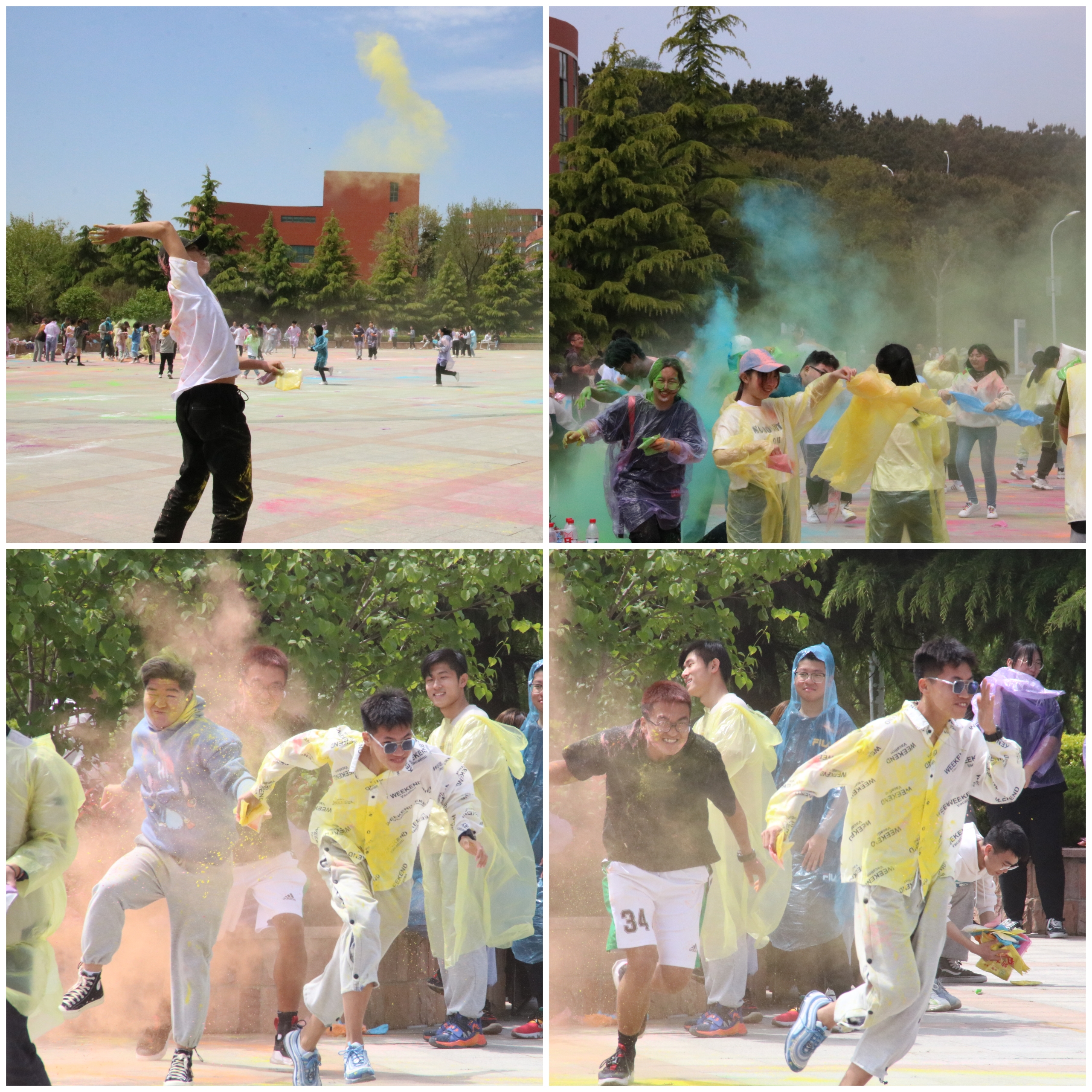 本次活动共计113个队伍679人报名参加,经过常识问答初赛选拔,共计50支队伍300人进入彩色酷跑决赛。决赛当天,首先由主持人为参赛选手简要介绍游戏规则以及活动注意事项。随着外语系文艺部和音乐社的精彩表演,彩色酷跑正式拉开了帷幕。本次活动在校园内共设立十个游戏站点以及两个补给站,各个队伍纷纷拿着手中的指示牌出发奔向关卡,感受运动与色彩的激情碰撞。各队伍精彩角逐,他们争分夺秒,成为校园里一道道亮丽的风景线。参赛选手经过各个站点完成挑战后,纷纷奔向移动广场,凭借印章数量领取彩粉和雨衣并进行撒粉大战,庆祝活动的圆满成功。选手们激烈追逐,互相撒粉,天空中、广场上一片斑斓,再多的色彩也无法掩盖同学们欢呼和脸上那耀眼的笑容。最终“婷婷玉立”队取得了第一名的好成绩,活动在一片欢声笑语中步入尾声。