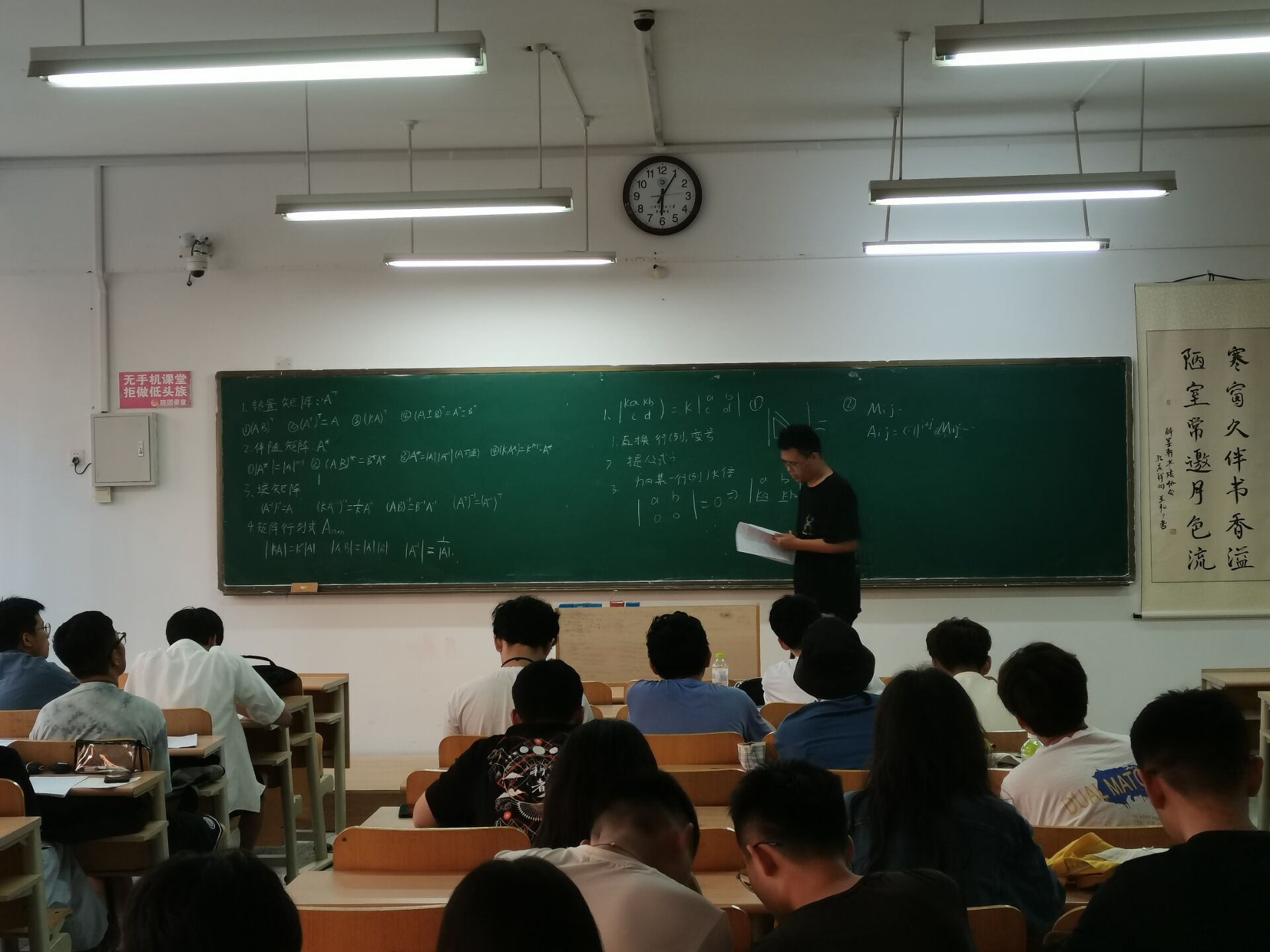 本次活动学习部请来的主讲师是来自电力电子实验室的学长李岩。首先,学长梳理了线性代数一书中的知识框架。然后结合平时分块的练习,系统的讲解书本中的重难点知识,通过这种方法来加深同学们对于知识点的理解。接下来,学长又讲解了练习册上的第一套模拟题,这样既将前面所学的知识点充分的运用在习题中,又加深了学弟学妹们对于所学知识点的理解和使用。