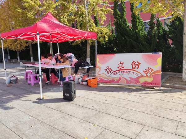 为践行社会主义核心价值观,弘扬奉献、友爱、互助、进步的志愿精神, 11月1-7日,寒冬来临之际,经管系青年志愿者协会在学院第二食堂前广场组织以 “暖冬行 捐衣份爱”为主题的献爱心捐衣捐款活动,积极为四川大凉山贫困山区的孩子们募捐暖冬衣物。