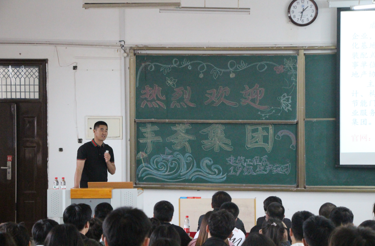 张总工程师做了以《装配式建筑技术创新推动绿色低碳发展进程》为主题的专业讲座。介绍了威海丰荟集团有限公司的发展历程、装配式建筑的历史、国家政策支持、套筒连接关键技术、竖向构件连接关键技术、水平构件连接、国外装配式关键技术等,为同学们搭建起从专业知识向工程实践过渡的桥梁。