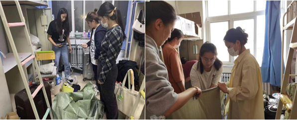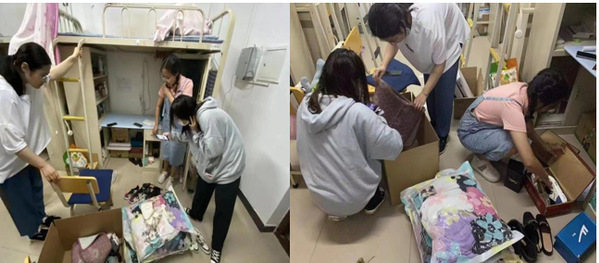 青协主席团详细统计未返校毕业生的宿舍号、联系方式等基本信息,贵重物品清单、捐赠物品清单、遗弃物品清单等行李打包信息,以及邮寄地址的快递类型选择和行李去向信息。在此基础上,制定了行李打包、协调对接、邮寄等事宜的工作方案。方案发布后,全体青协成员积极响应,踊跃参加到毕业生行李打包工作中。6月8日至9日,大家通过视频连线,整理物品,打包行李。在整理打包行李的过程中,每一件物品都征求毕业生意见,细心地整理到打包袋和打包箱中。一袋袋行李相继打包、搬运至楼下。天气炎热,大家脸上满是汗水,纵然湿了衣衫,却没有一个人喊累,更没有停下脚步。紧握推车的双手,是志愿者们甘于奉献的写照;忙碌的背影,是志愿者们贡献自我的象征。