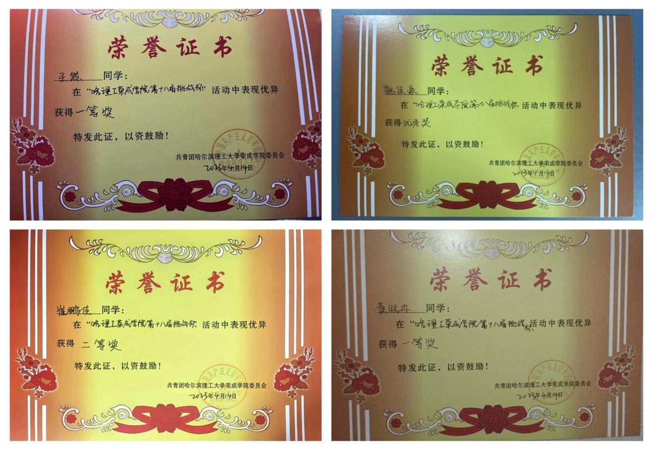 光阴荏苒,汗水挥洒。哈尔滨理工大学荣成学院于2023年4月开展第十八届“挑战杯”大学生课外学术科技作品竞赛,大赛秉持着“崇尚科学、追求真知、勤奋学习、锐意进取、迎接挑战”的宗旨,面向荣成学院全体在校学生,目的是促进我校学生课外学术科技活动的蓬勃发展,引导和激励青年学子勇于创新,发现和培养有作为、有潜力的学术科技优秀人才,同时也为黑龙江省和全国“挑战杯”大学生课外学术科技作品竞赛选拔作品。