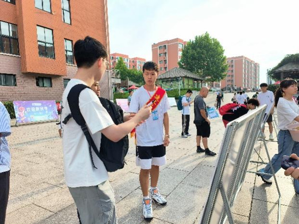 志愿者们用微笑温暖新生,让他们感觉离开家来求学的心并不孤单;用热情感染他们,让他们感受到大学的生活是如此的丰富多彩,活力四射;耐心的帮助他们,让他们能够尽快熟悉学院的一切。愿他们能迅速适应大学生活,开拓属于自己的一片蓝天。(摄影:苏琦)