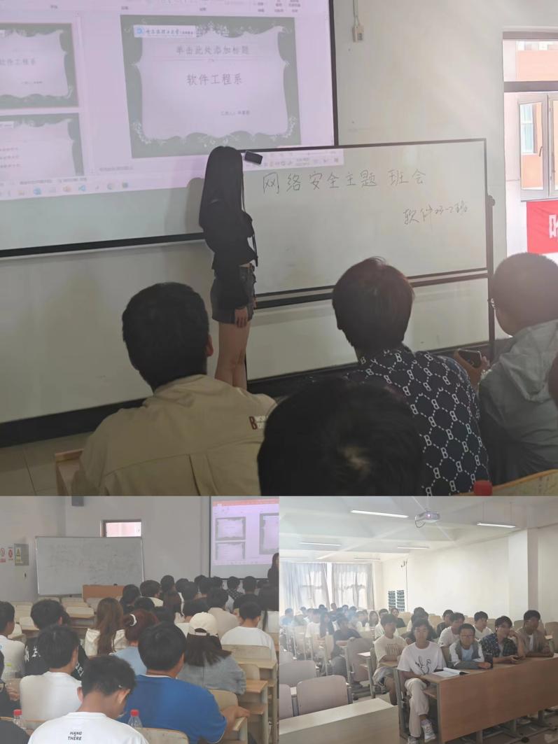 网络安全周期间,软件工程系积极开展网络安全宣传、学习相关工作,组织各学年召开以“营造安全健康文明的校园网络环境”为主题的班会。班会上,同学们积极参与到讨论当中,现场气氛热烈,在一问一答、举例讨论环节中,网络安全的重要性、防骗防诈应对手段等讨论主题内容深深触动了在场同学。与此同时,系里安排了一系列网络安全相关活动。9月11日,系里组织同学们进行网络安全知识线上学习;9月13日,组织同学们参加“网络素养能力提升大课堂”共同学习;9月15日,组织同学们参加“守护青春,网络有你”大学生网络安全知识答题活动。