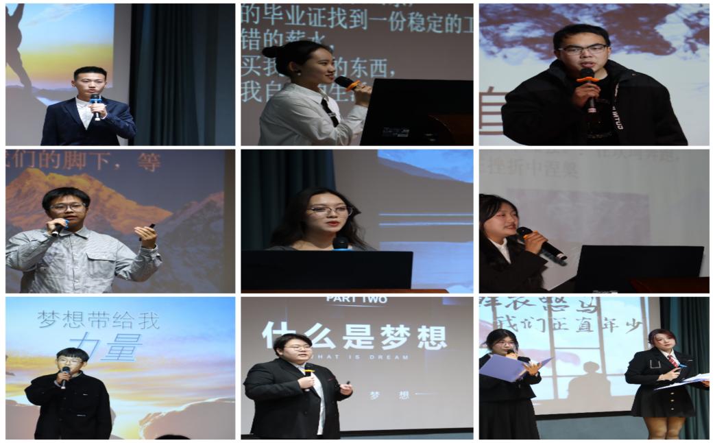 首先由主持人宣布比赛流程和细则,九组参赛选手先后上台以PPT、视频等形式演讲,他们围绕着“梦想”这一主题,用激情的演讲、感人的故事、深刻的见解,打动了在场的评委和观众。本次比赛得到了全院师生的广泛关注和参与,现场气氛热烈,选手们表现出色,观众们反响强烈。通过这次比赛,不仅提高了同学们的演说能力和表达能力,也激发了同学们追求梦想的热情和勇气。 在比赛过程中,大学生艺术团部长李冠男同学更是为大家表演了京剧《上天台》,再度将现场氛围推向了高潮。