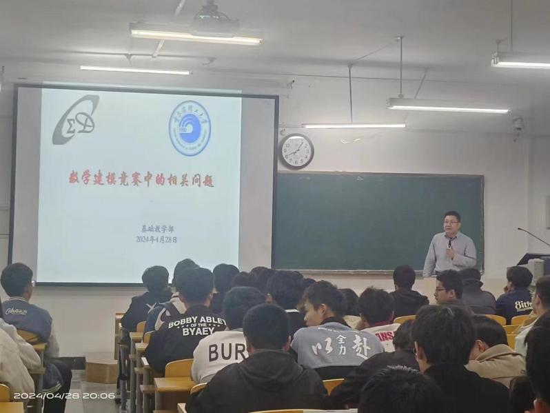 荣成学院东三省数学建模动员大会暨专题讲座于4月28日晚上在四号教学楼教室举办。此次活动旨在提升学院东三省数学建模竞赛的参与度和竞赛水平,进一步推动数学建模在学院中的普及与应用。