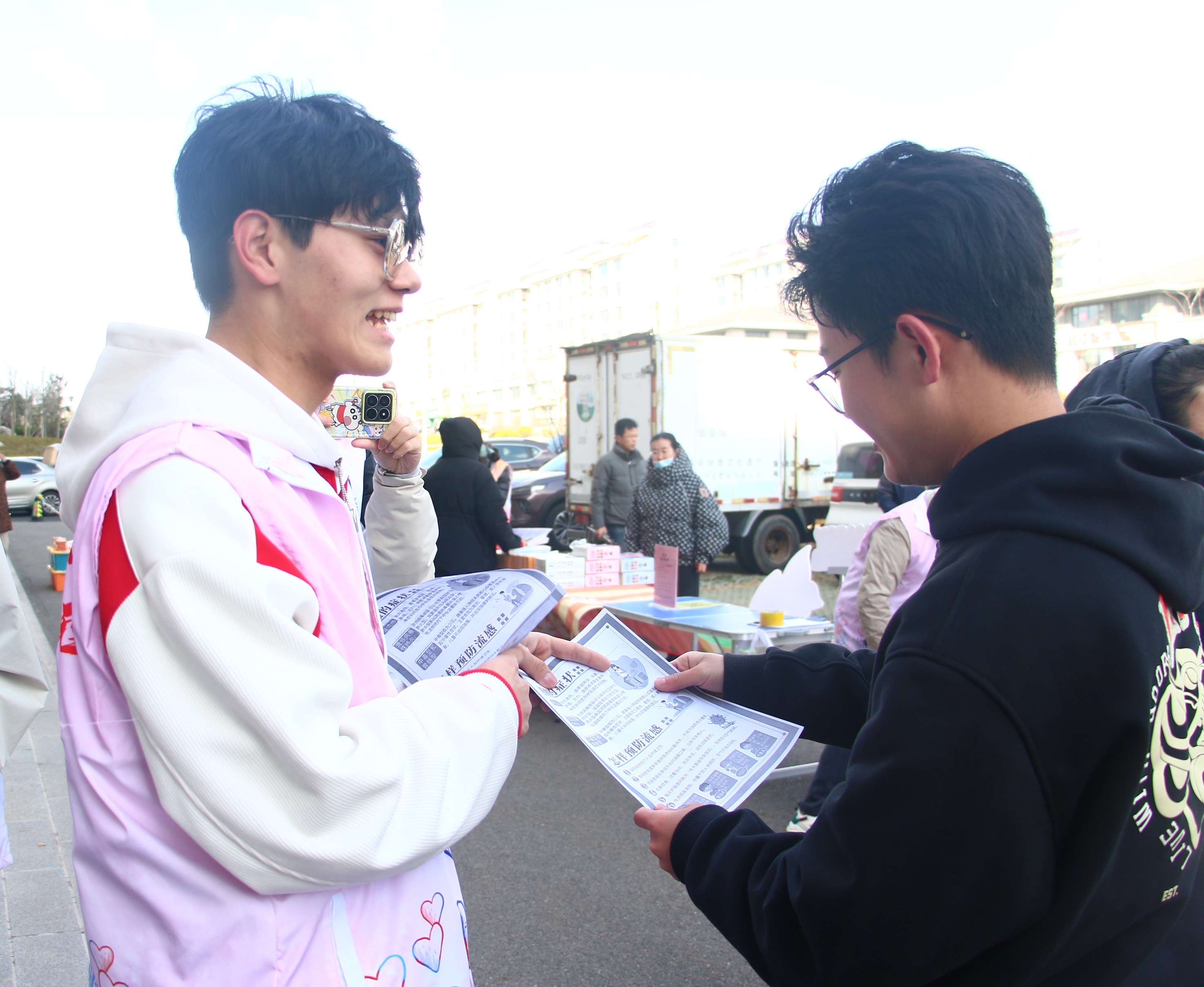 市集入口处,学院几名志愿者协助糖葫芦摊主支起摊位,旁边的志愿者则忙着为每串糖葫芦系上印着“笑容”图案的包装纸;在果蔬区,学生们蹲在摊位前协助农户分装新鲜蔬菜,为萝卜、白菜贴上手写的“爱心价”便签。行人嘴里的鲜甜进入口中化为阵阵暖流,朴实的行为得到了人们的赞誉,社区阿姨捧着刚买的芹菜笑着说:“这些大学生说话做事都带着股暖乎劲儿,办的集市格外讨人欢喜。”