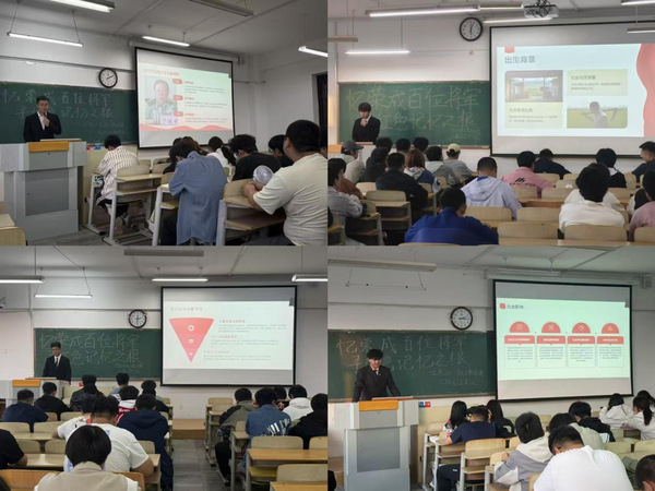 团课以荣成籍革命英雄事迹为核心,通过PPT讲解、短视频展播等形式,生动还原了张怀忠、慕思荣、魏来国、刘景尧四位英雄的感人事迹。张怀忠作为荣成早期抗日先锋,他带领村民组建抗日武装,在敌后战场多次伏击日军,用智慧与勇气守护家园。团课中播放的纪录片片段,再现了他面对敌人炮火时“宁死不退”的坚定身影;慕思荣作为解放战争时期支前模范,他组织乡亲支援前线,推着独轮车运送物资,用血肉之躯筑起“钢铁运输线”;抗美援朝战斗英雄魏来国,以“神枪手”之名闻名,曾在一次阻击战中击退敌军3次冲锋。PPT展示的他写给家人的书信中“保家卫国,无怨无悔”的誓言,令在场学子动容;隐蔽战线无名英雄刘景尧,长期潜伏敌后传递情报,为荣成解放作出不可磨灭的贡献。