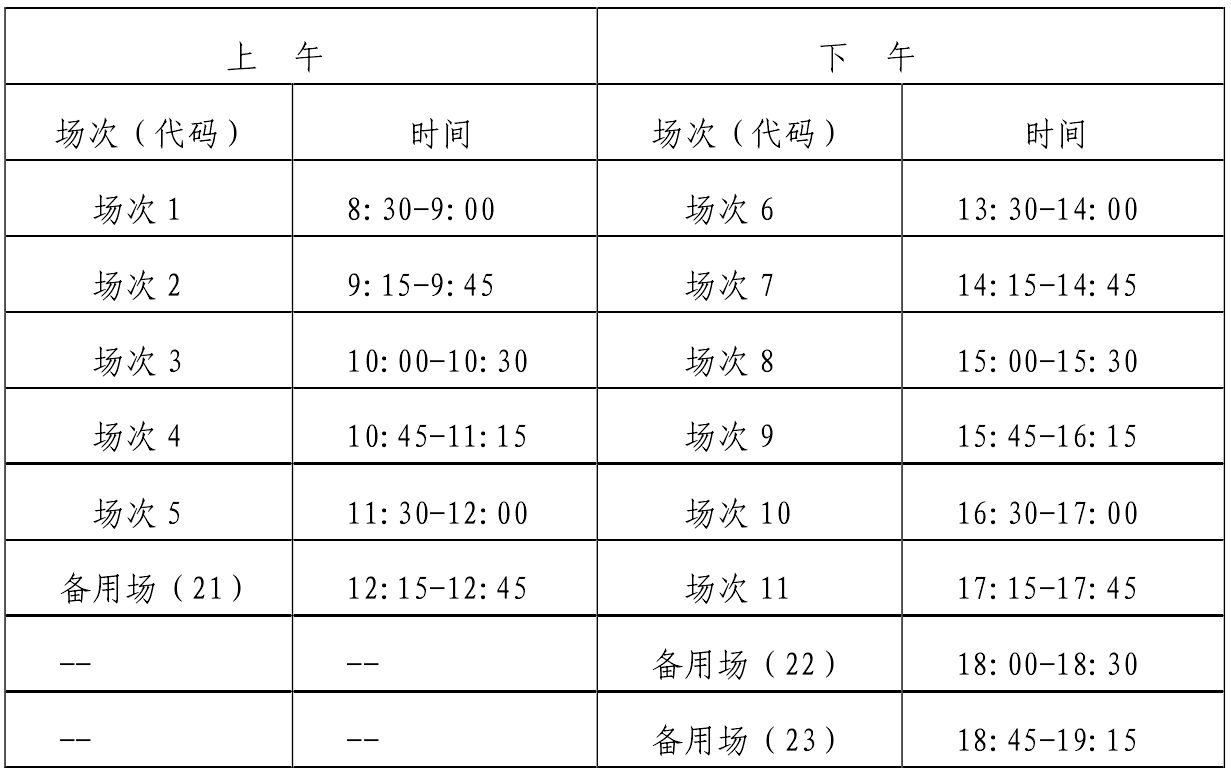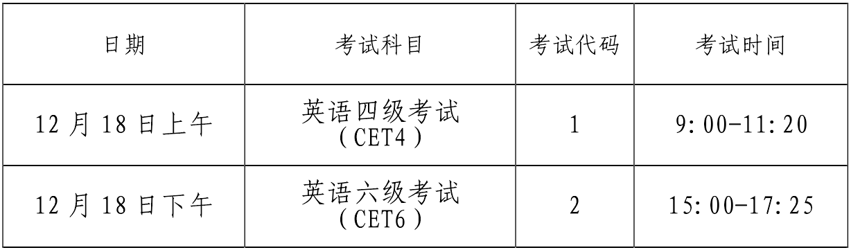 英语四级口语考试(CET-SET4)考试时间为11月20日(F213次),英语六级口语考试(CET-SET6)考试时间为11月21日(S214次),具体场次安排如下: