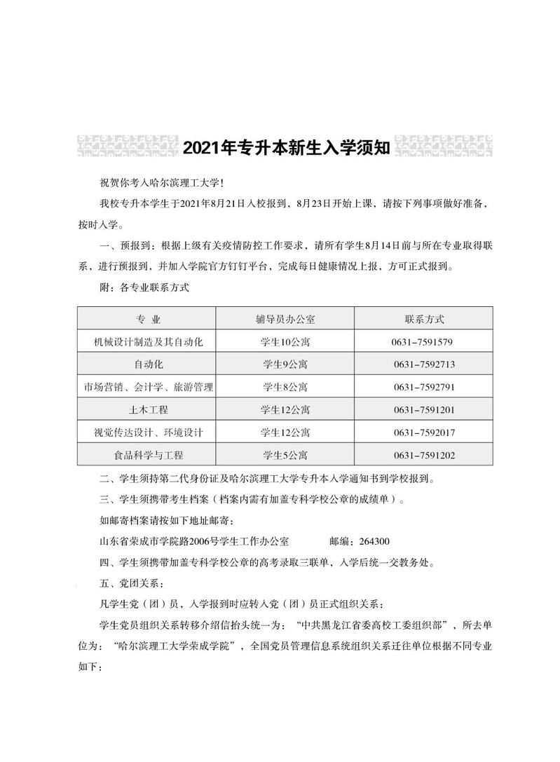 2021年专升本新生入学须知