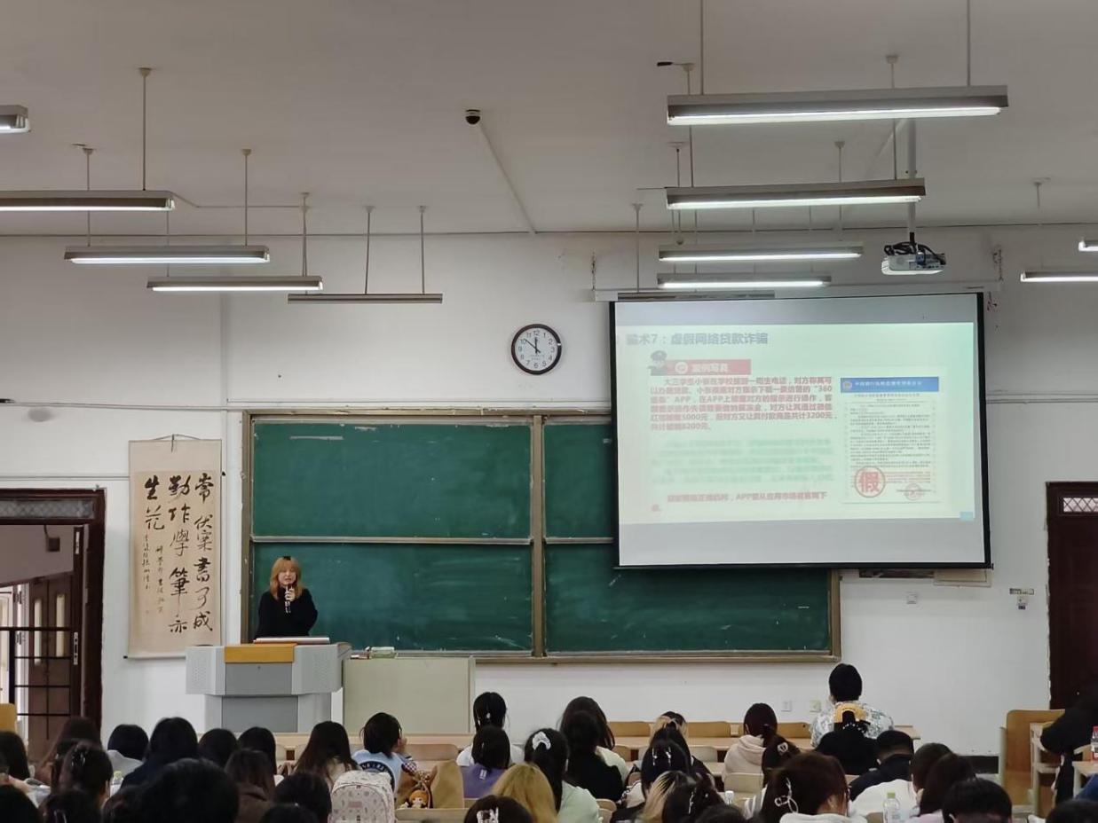 大会伊始,学生会主席赵冰倩为在场同学敲响就业安全警钟。她结合自身见闻与真实案例,深度拆解了大学毕业生求职路上的各类“隐形陷阱”——从巧立名目索要“保证金”“培训费”的虚假合约,到借“试用期”之名盗取个人信息的不法操作等,层层剖析诈骗套路的隐蔽逻辑。她的讲解生动鲜活、发人深省,为即将踏入社会的同学筑起一道坚实的求职“防火墙”。