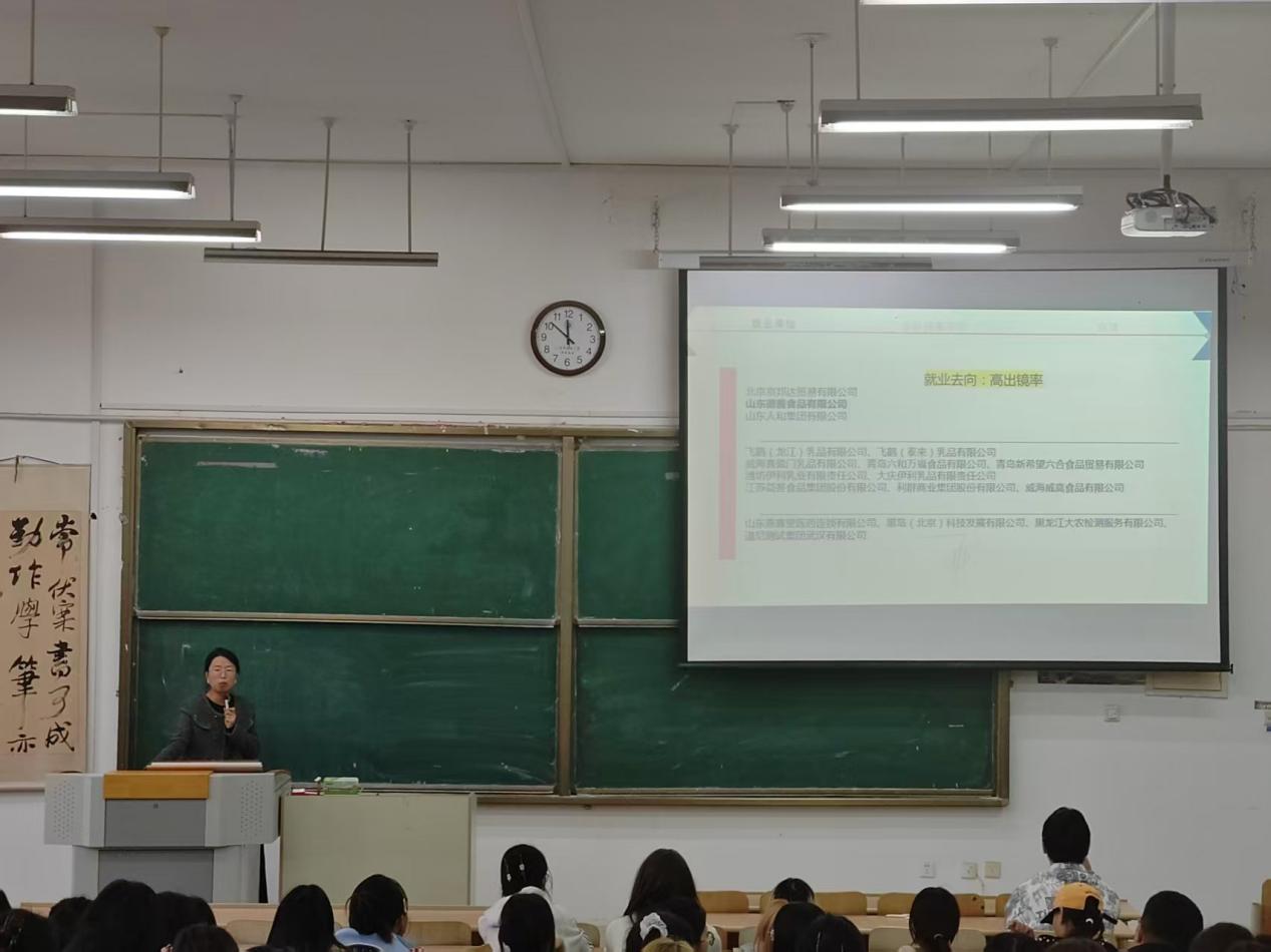 她指出,“从伊利、飞鹤等食品企业,到生物医药、日化、质检等多元领域,都有我系毕业生的身影。”同学们要厚植专业自信,拓宽就业视野,主动把握功能性食品研发、食品安全溯源、供应链精细化管理等新兴赛道的发展机遇,在时代浪潮中找准自身定位。
