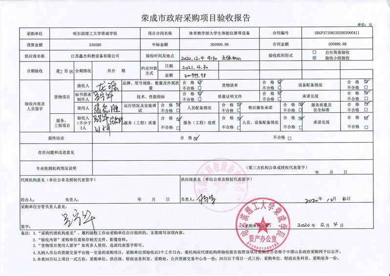 一、合同名称:体育教学部大学生体能仪器等设备
