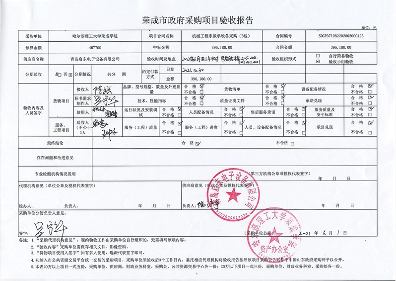 二、中标(成交)供应商:青岛启东电子设备有限公司