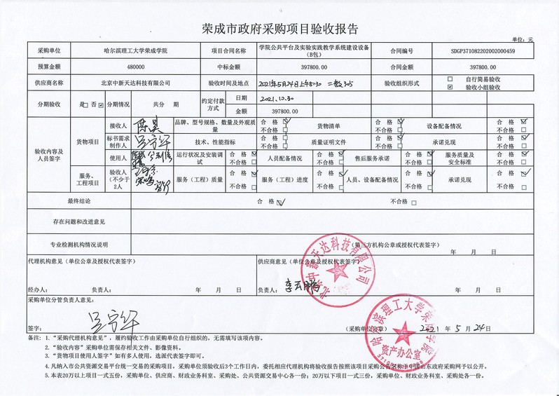 一、合同名称:学院公共平台及实验实践教学系统建设设备
