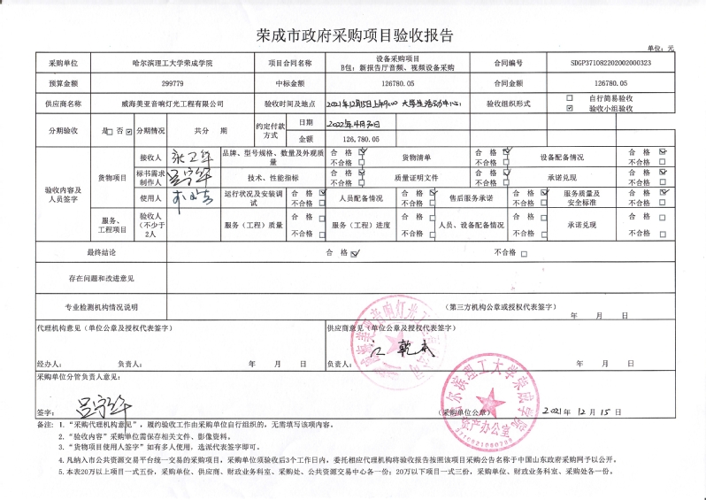 采购人:哈尔滨理工大学荣成学院